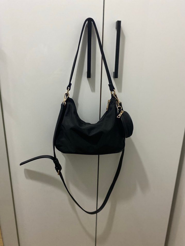 Siyah deri, kemer detaylı kadın çantası. Minimalist ve desensiz tasarımıyla günlük kullanıma uygun, trend sokak stili için ideal.