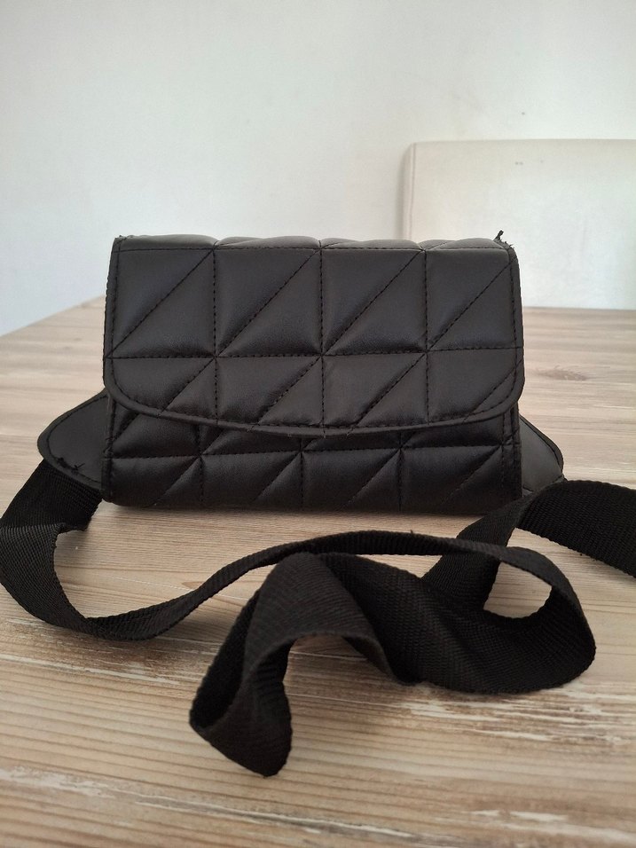 Kemer detaylı, siyah deri kadın çanta. Minimalist, desen içermeyen tasarımıyla günlük sokak stiline uygundur. Ürün göründüğü gibidir kullanıma engel bir şeyi yoktur.