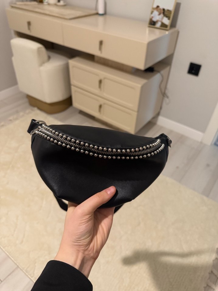 Siyah Deri Kemerli Kadın Çapraz Çanta bershka