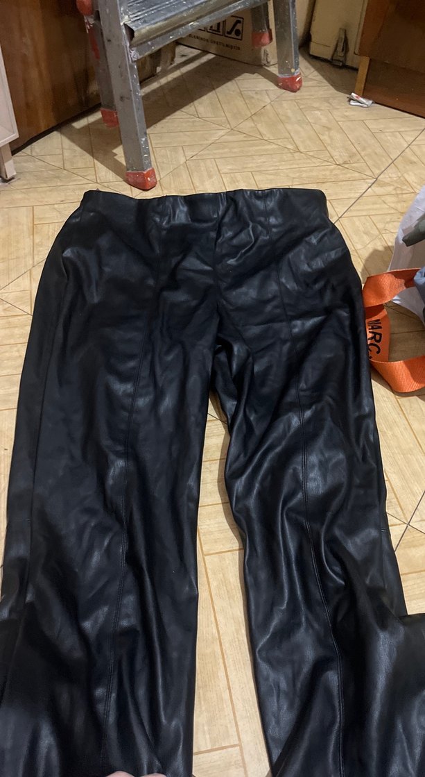 Siyah deri, kemerli ve midi boy kadın pantolon. Düz, desen içermeyen tasarımıyla gündelik dış mekan kullanımı için uygun, şık bir sokak stili ürünü.