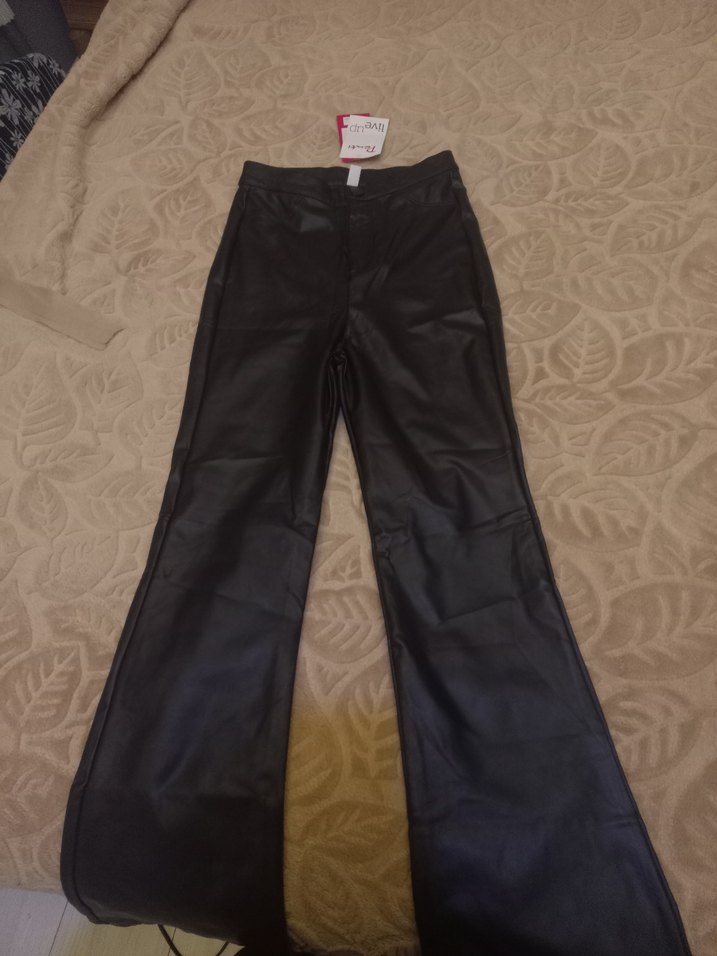 Siyah deri, kemerli, , ispanyol paca kadın pantolon. Rahat sokak stili için uygundur. 167 boy 56 kg tam geliyor yeni etiketli