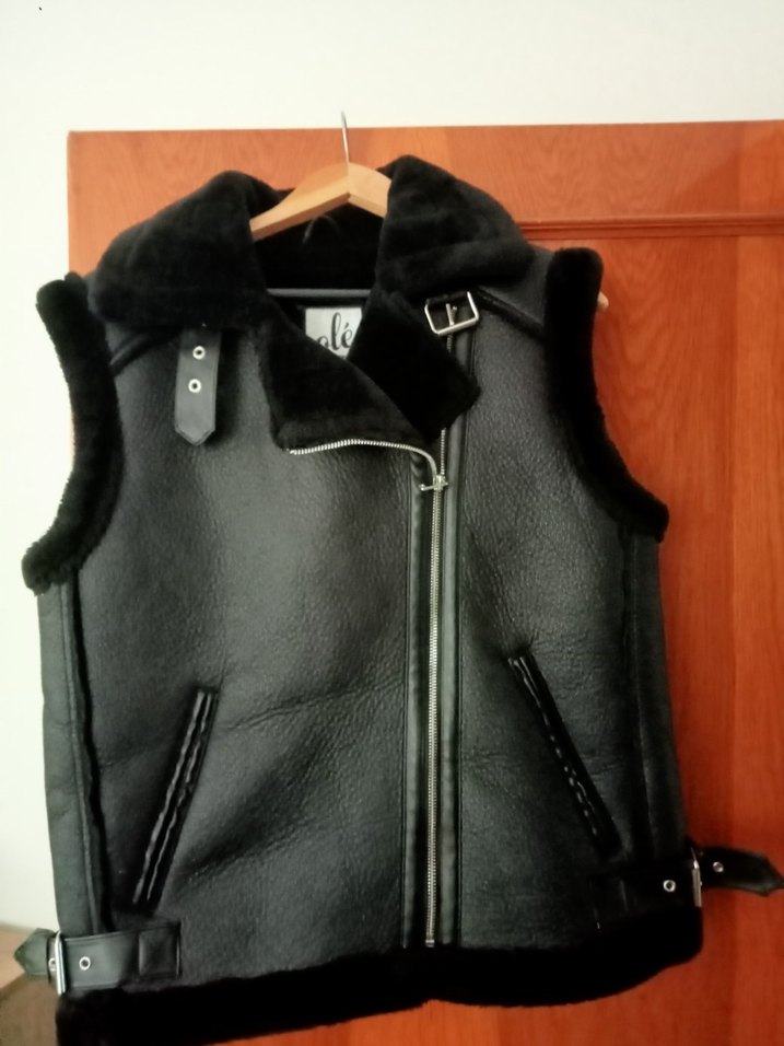 Siyah Deri Kemerli Kolsuz Biker Ceket