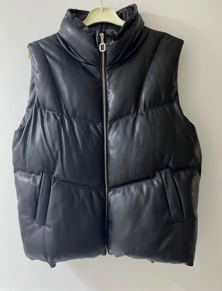 Siyah Deri Kemerli Kolsuz Kadın Yelek