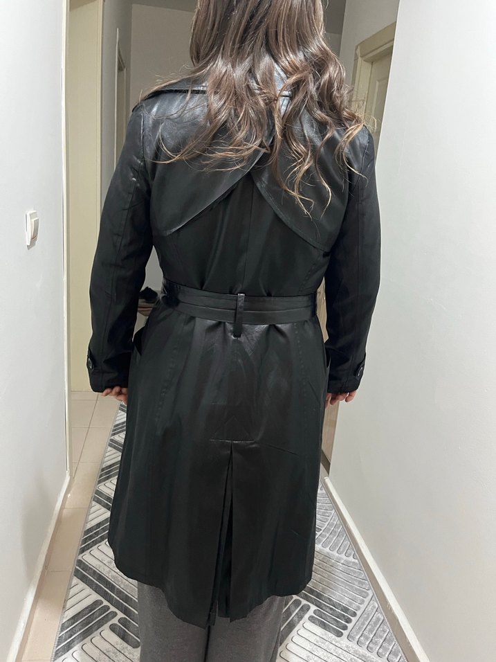Siyah Deri Kemerli Midi Trençkot vintage