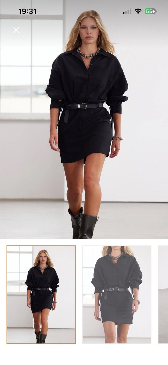 Siyah gömlek mini elbise, kemer detayı ve yakası ile minimalist normcore tarz sunar. Salaş kesimi ve askılı kolları günlük kullanıma uygundur.