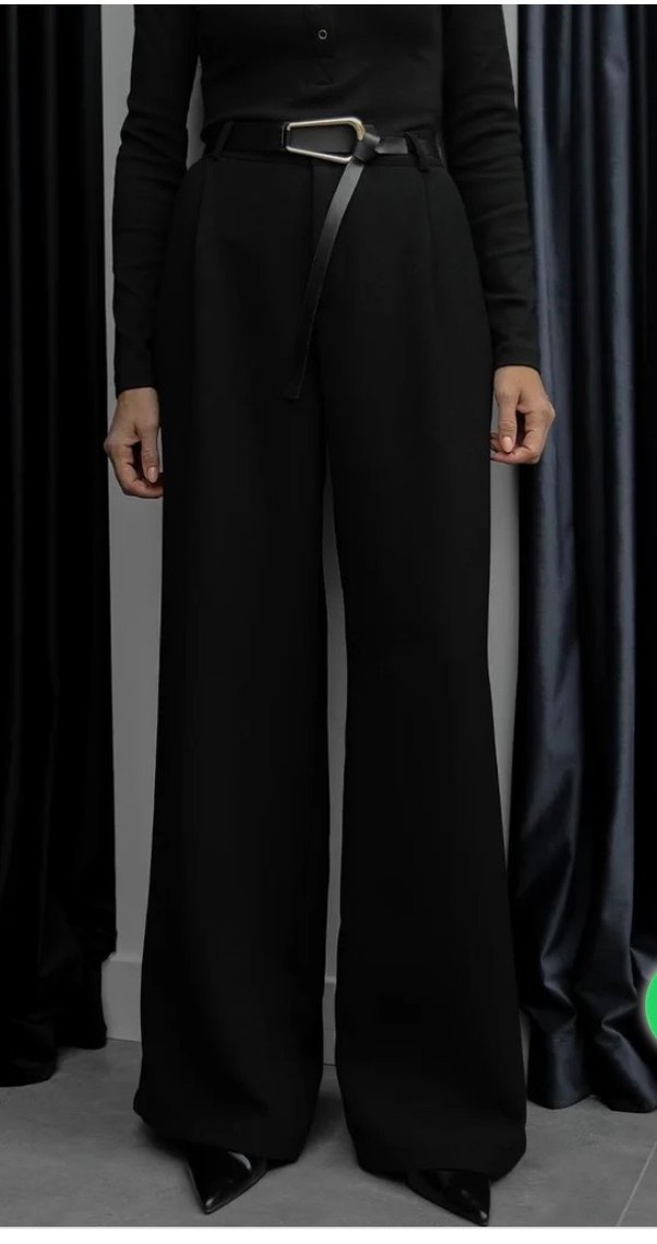 Siyah deri kemerli palazzo pantolon, bir kez denemek için giyilmiştir. Bedenden dolayı satıyorum hiç bir deformesi yok.