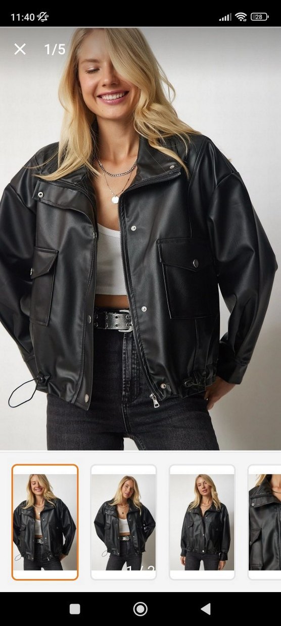 Siyah deri, yakalı ve askılı kollu, kemerli ve salaş kesim ceket. Sokak stiline uygun, günlük kullanıma elverişli. oversize duran deri ceket. hiçbir kusuru yok markası pull bear değildir.