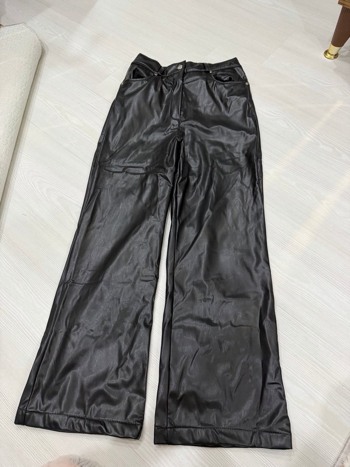 Siyah Deri Kemerli Salaş Kadın Pantolon