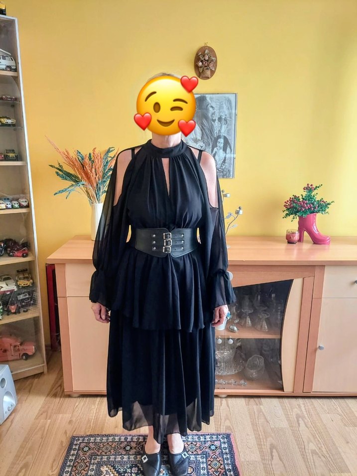 Siyah Deri Kemerli Uzun Gotik Elbise ( Kemer dahil değildir )