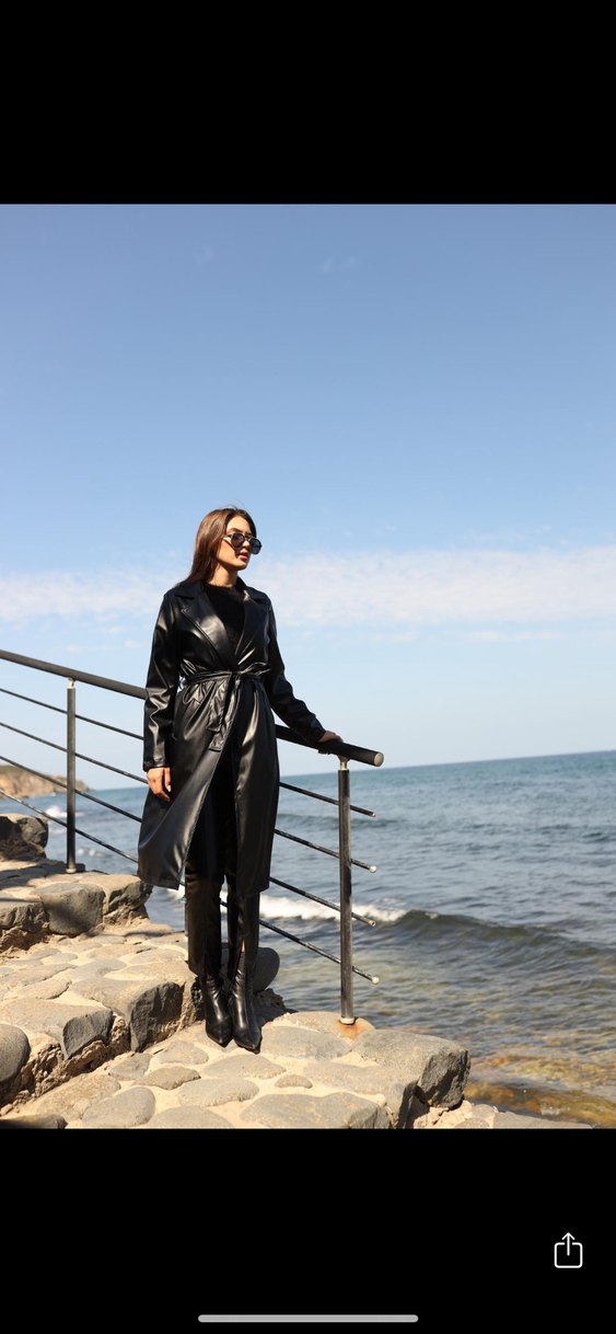 Siyah deri kemerli uzun trençkot, yüksek yakalı ve askılı kolludur. Rahat kesim ve kemer detayına sahiptir, sokak stiline uygundur. Birkaç kez kullanıldı yeniden farksız hiçbir sorunu yoktur almak isteyene detaylı resim gönderirim