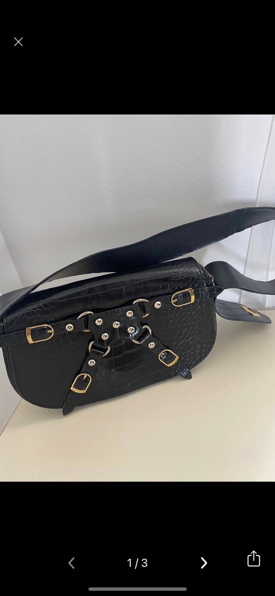 Siyah Deri Kemerli Yılan Desenli Çanta