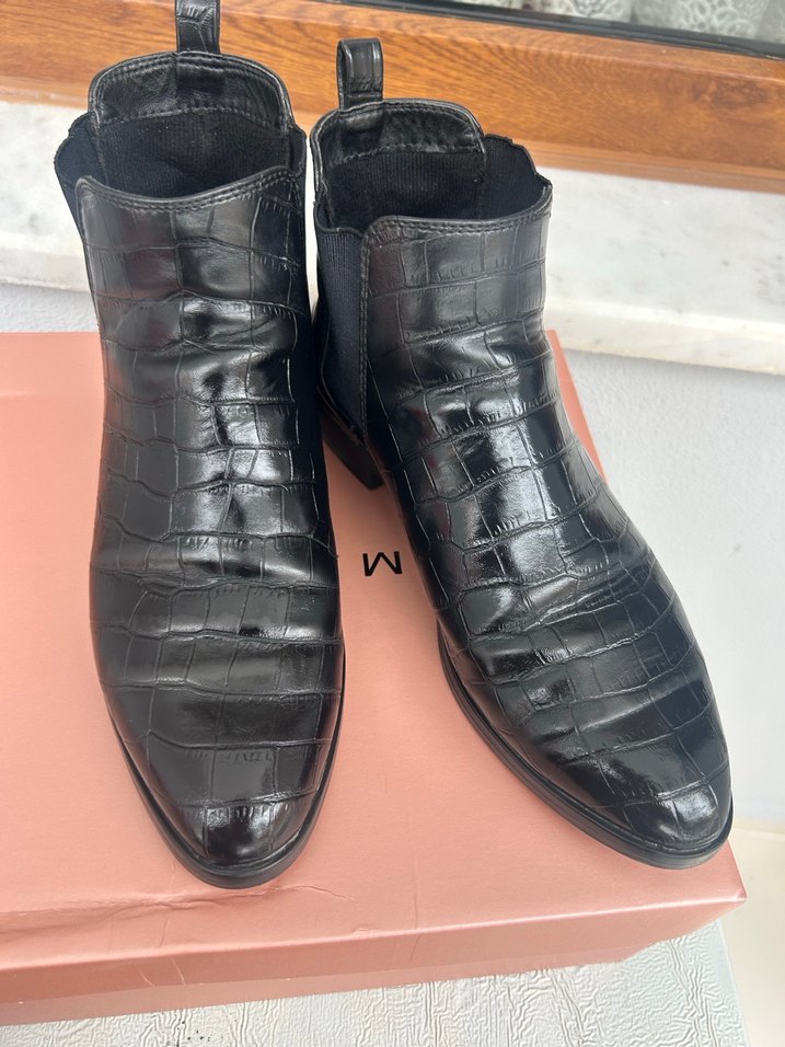Siyah Deri Kemerli Yılan Desenli Kadın Bot