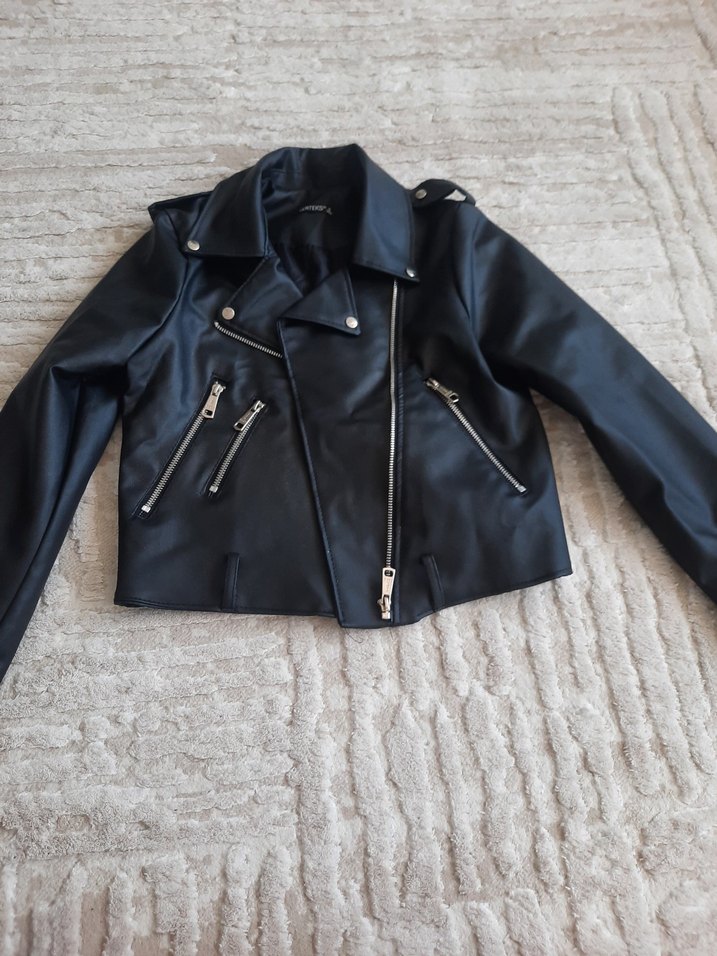 Siyah Deri Kısa Biker Ceket