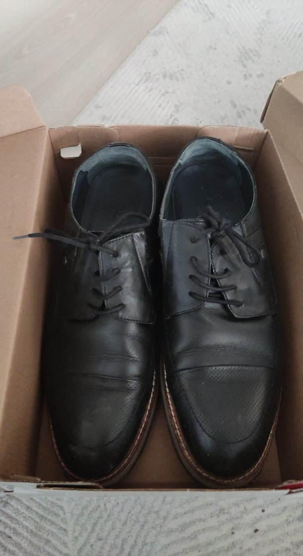 Koyu siyah renkte, tokalı deri klasik erkek ayakkabısı. Ofis için uygun, desen içermeyen şık bir model. 41 numara rahat kalıp