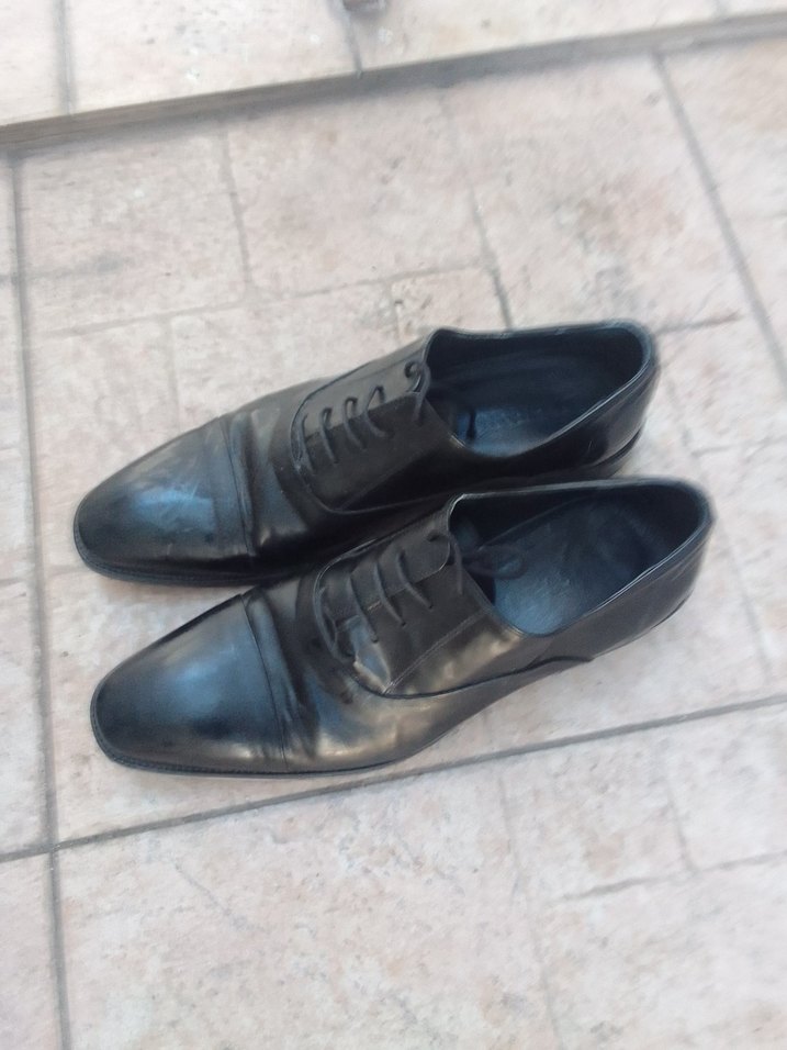 Siyah deri klasik erkek ayakkabısı, desen içermeyen şık tasarım. Ofis kullanımı için goth tarzıyla zahmetsiz şıklık sunar.