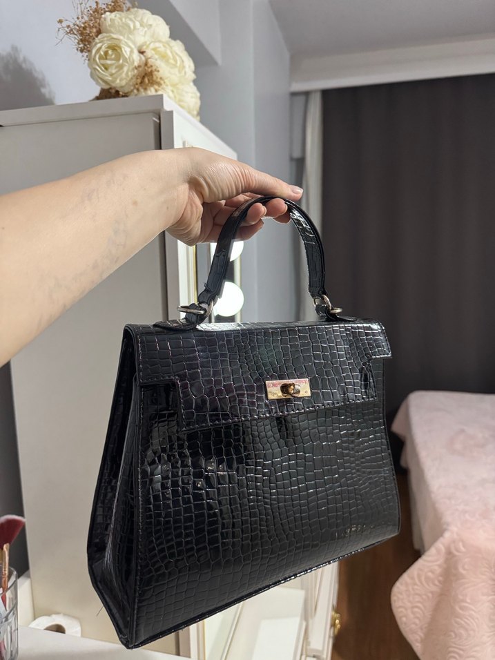 Siyah Deri Klasik Kadın Çanta