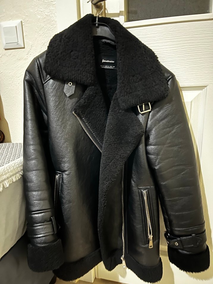 Siyah Deri Kürklü Biker Ceket