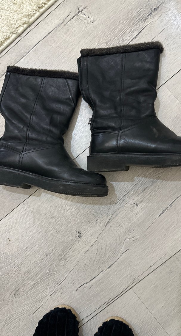 Siyah deri, kürklü iç detaylı ve dolgu topuklu kadın biker botları, günlük kullanıma uygun sade ve rahat tarzda.