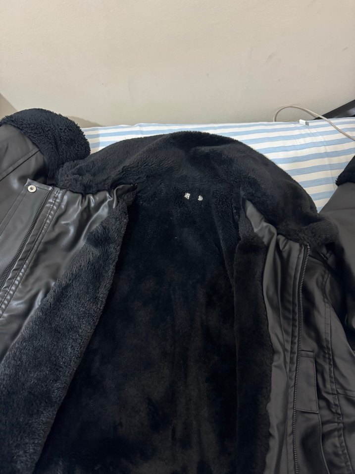 Siyah deri ceket, kürklü yakası ve manşetleriyle, uzun kollu ve bol kesimdir. Günlük kullanıma uygun, rahat ve şık bir sokak stili parçasıdır. M beden pazarlık yapılır