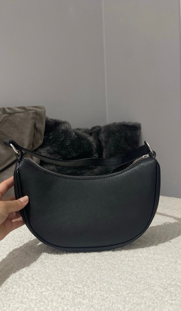 Siyah Deri Kürklü Kadın Omuz Çantası