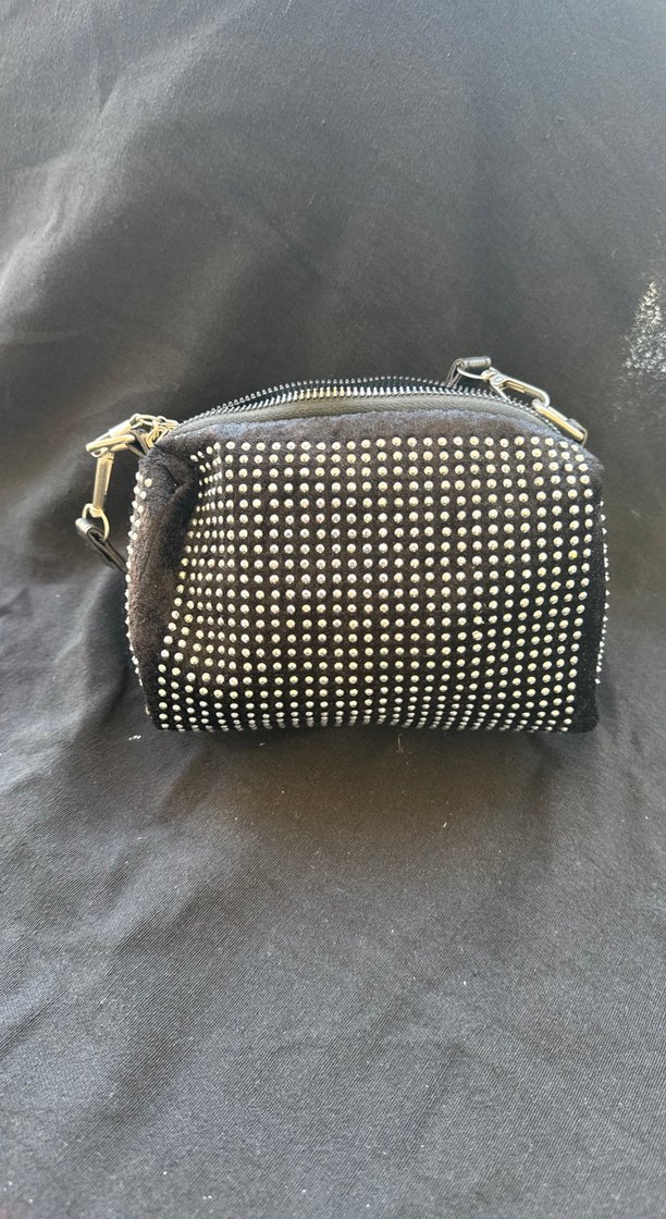Leopar desenli ve çivili detaylara sahip siyah deri kadın çantası. Rock punk tarzında, göz alıcı ve modaya uygun tasarım.