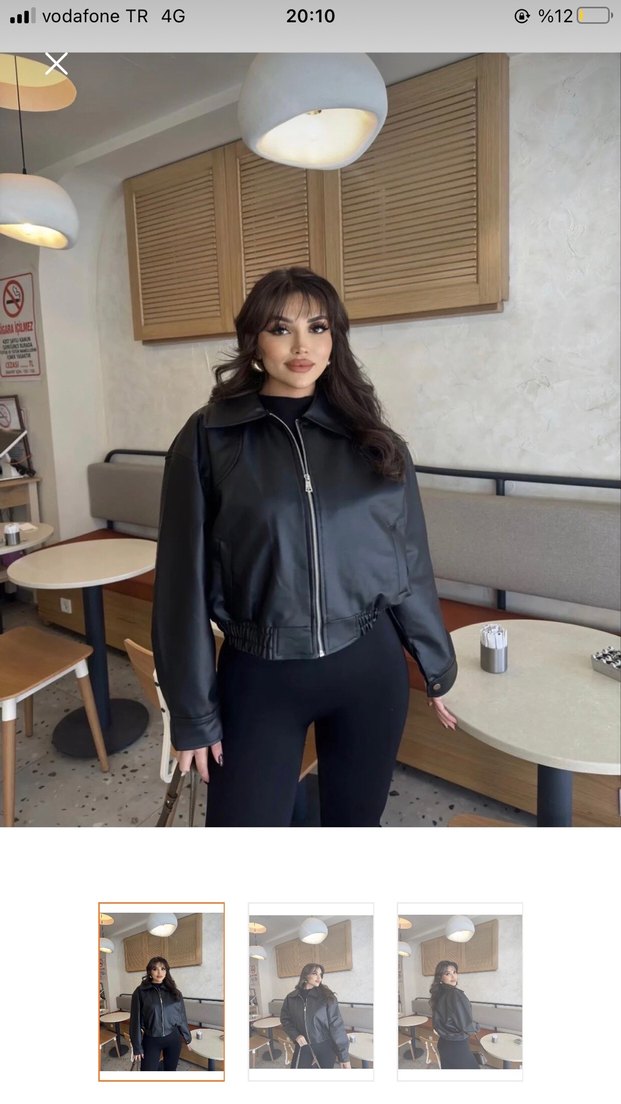 Siyah deri, yüksek yakalı ve uzun kollu ceket. Rahat kesimi ve şık duruşuyla günlük kullanıma uygundur. Yeni hiç kullanılmadı I
