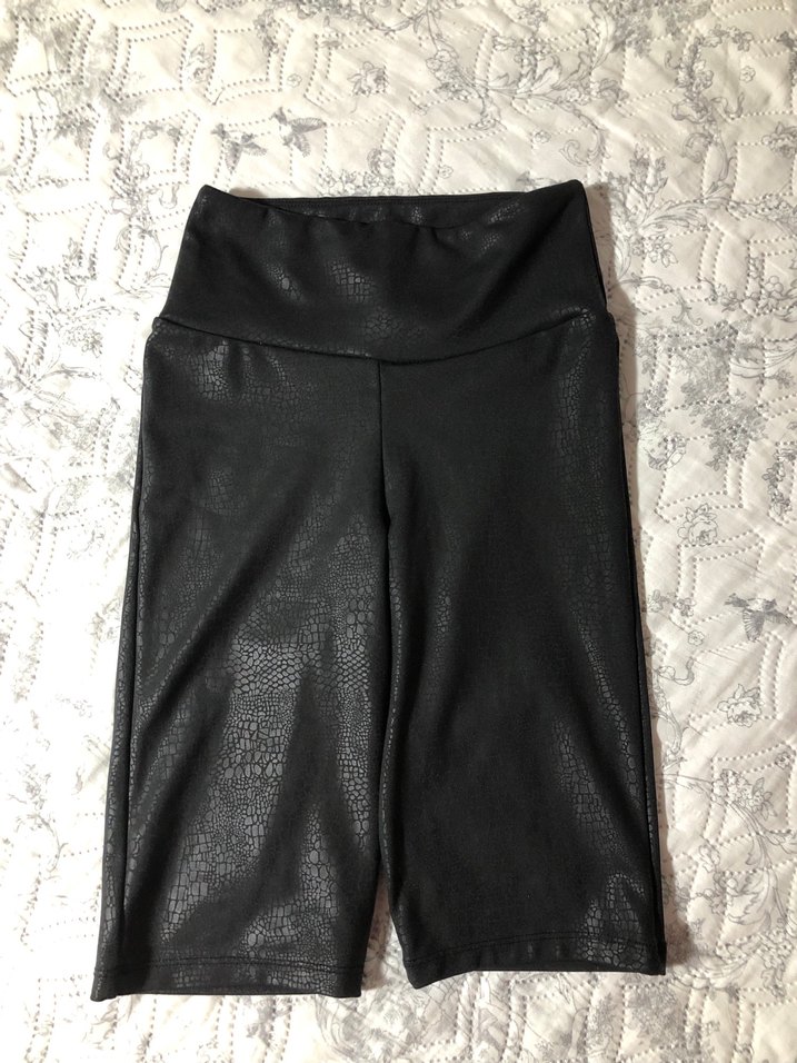 Kemerli bel kısmı ile siyah deri midi şort, gotik tarzda ve athleisure etkili. Günlük kullanım için uygun.