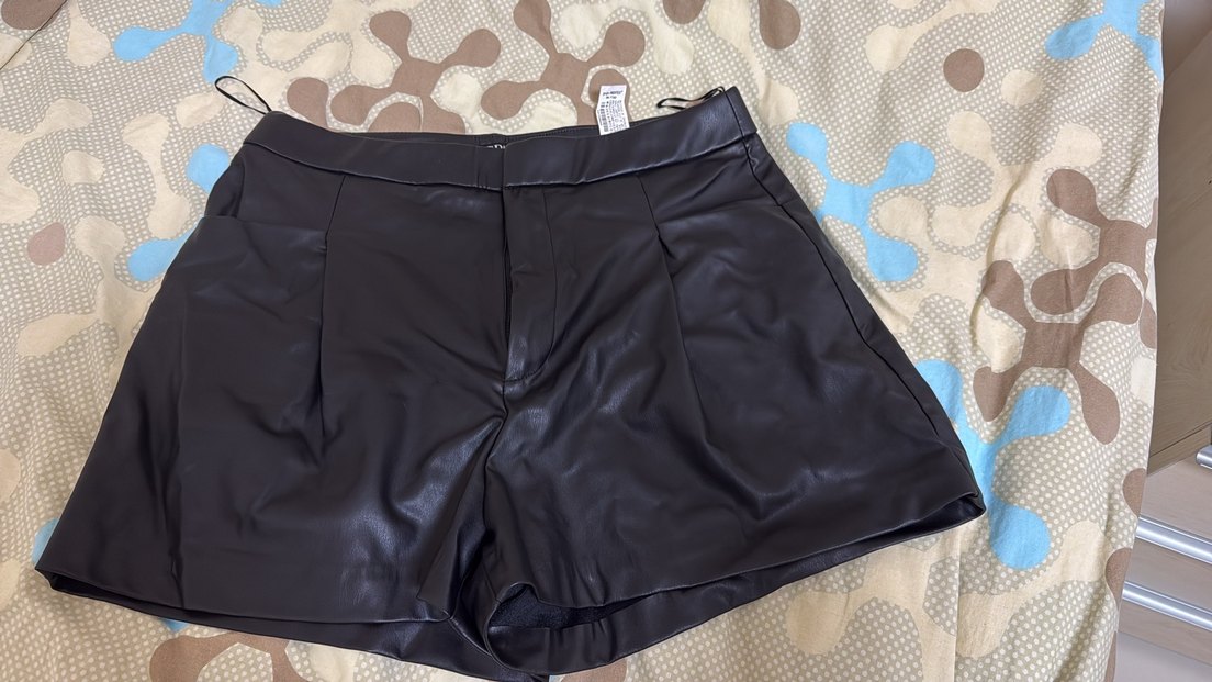 Siyah deri, bel kemerli ve vücuda oturan midi şort. Cesur sokak tarzı için uygun, desen içermeyen günlük kullanıma uygun şort.