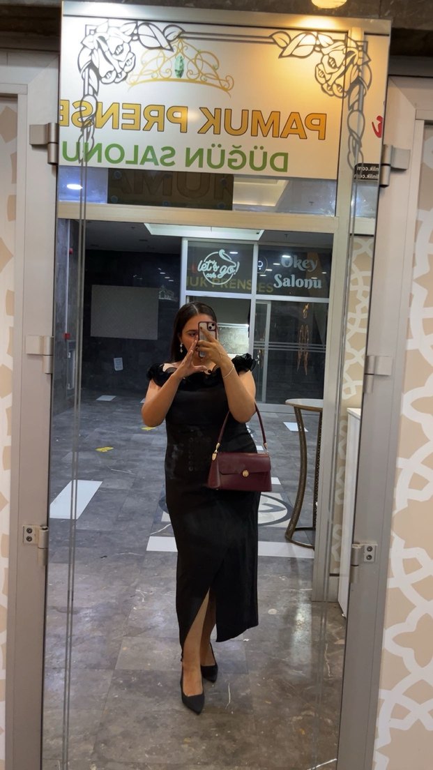 Siyah deri midi elbise, straplez yaka ve askılı kollara sahip. Baskılı deseni ve regular kesimiyle zahmetsiz şıklık sunar.Sadece bi defa giyildi temiz ve titiz kullanıldı teklife açığım.Likralı