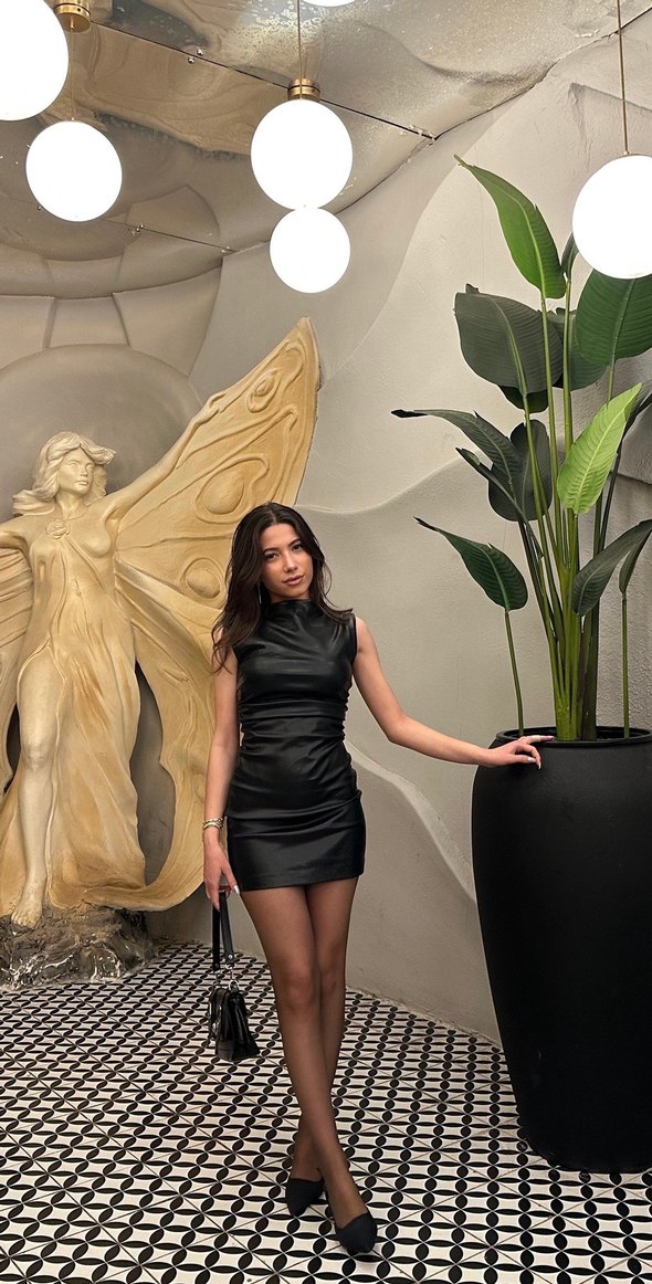 Siyah deri cesur ve minimalist gotik tarzıyla parti için uygundur. Hafif yılan derisi dokusu mevcuttur