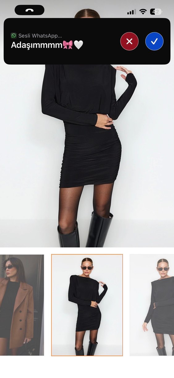 Siyah deri kısa elbise, uzun kollu ve yüksek yakalıdır. Kemer detayıyla modern ve cesur bir ofis tarzı sunar. Esnek kumaş xl bedene kadar uygundur