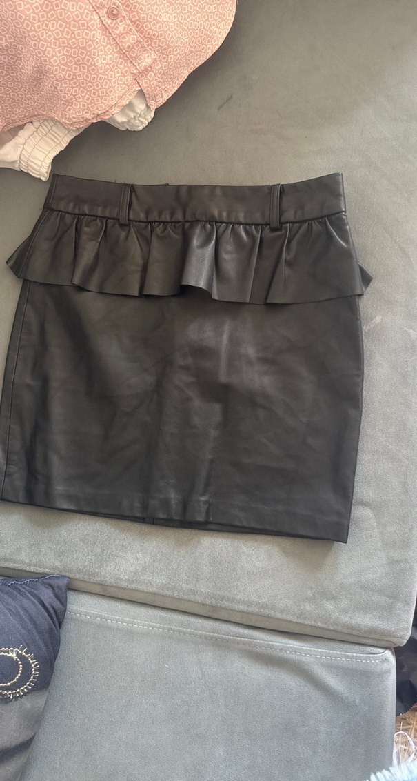 Siyah Deri Mini Etek Fırfırlı