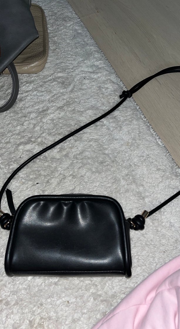 Siyah deri, sade ve desen içermeyen bu kadın çantası tokalı detaylara sahiptir. İnce askısı ile günlük sokak stiline uygundur.