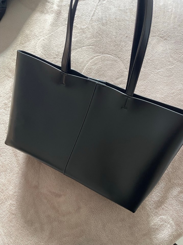 Siyah deri, minimalist ve çağdaş tasarıma sahip kadın çanta. Düz yüzeyi ve sade görünümüyle günlük kullanıma uygun, zahmetsiz şıklık sunar.