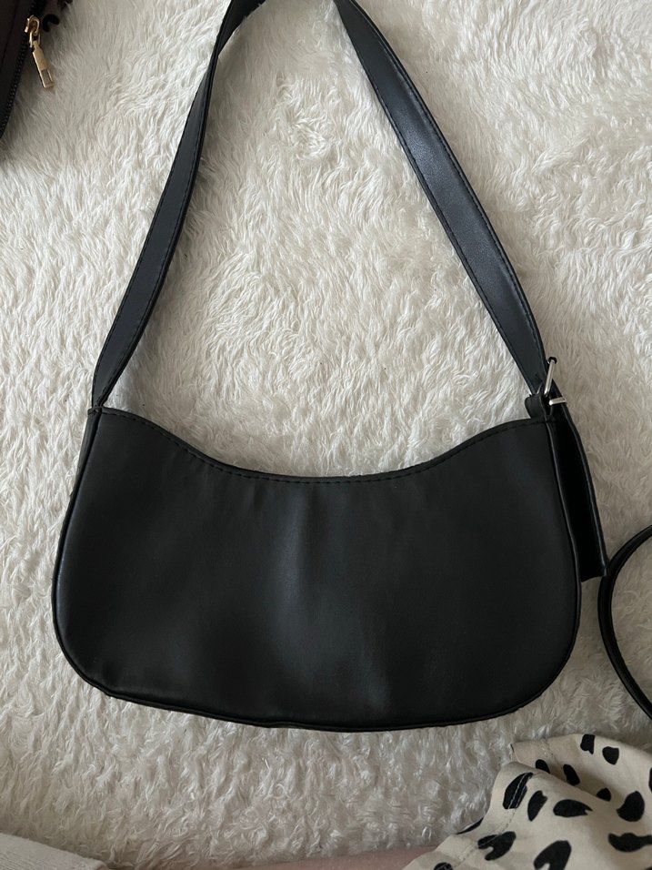 Siyah deri, tokalı detaylı minimal tasarımlı kadın çantası. Günlük kullanım ve sokak stiline uygun sade ve desensiz yüzeye sahip.