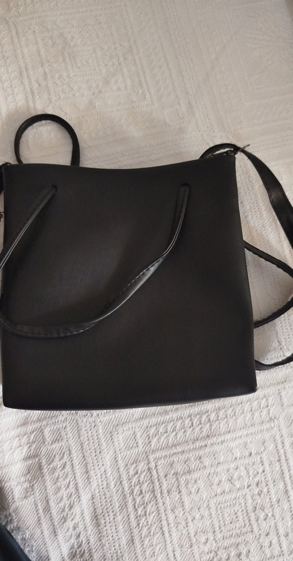 Siyah deri, desen içermeyen minimalist ve kare şeklinde kadın çantası. Günlük kullanım için zahmetsiz şıklık sunar.