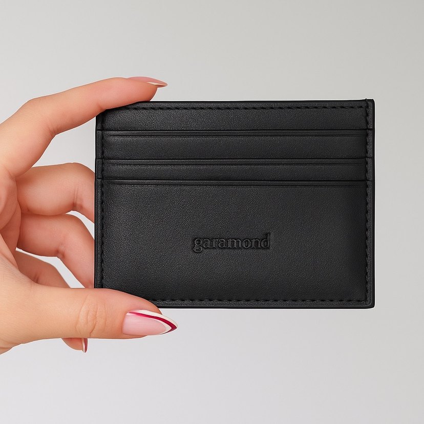 Garamond Siyah Deri Kartlık Minimalist tasarımı, kaliteli derisi ve şık görünümüyle tarzına tarz kat! • 4 kart gözü + 1 orta bölme • Kompakt ve dayanıklı yapı • Hem günlük kullanım hem de özel hediye seçeneği Şıklığını tamamlayacak bu kartlıkla cüzdan taşıma derdine son ver! ✨