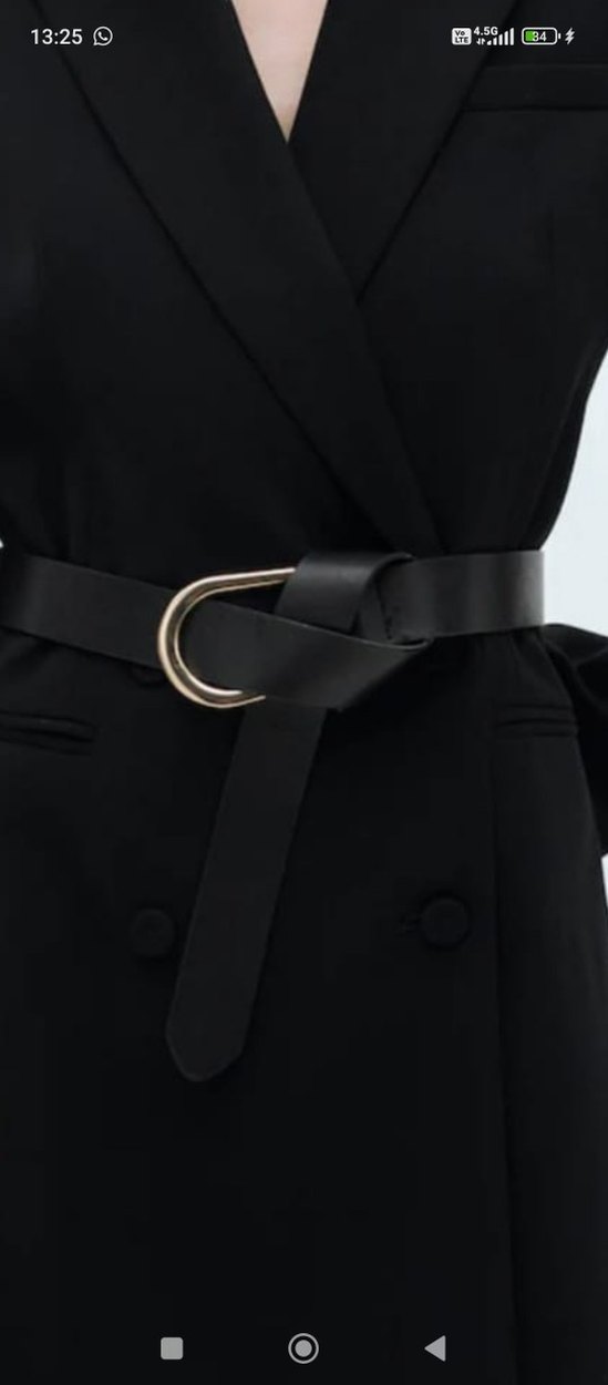 Siyah deri kemer, minimalist tasarımı ve benzersiz kemer tokasıyla sokak modası ve avant-garde tarzlar için uygundur.