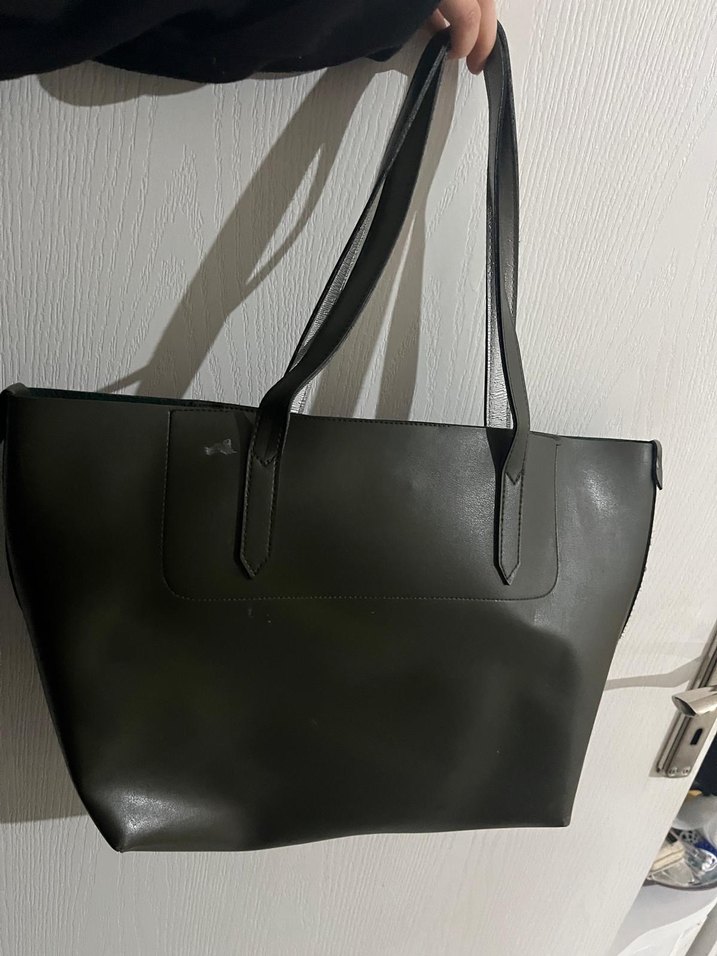 haki minimal tasarımlı kadın omuz çantasıdır. Tokalı detayları ve uzun saplarıyla günlük kullanım ve sokak stiline uygundur.