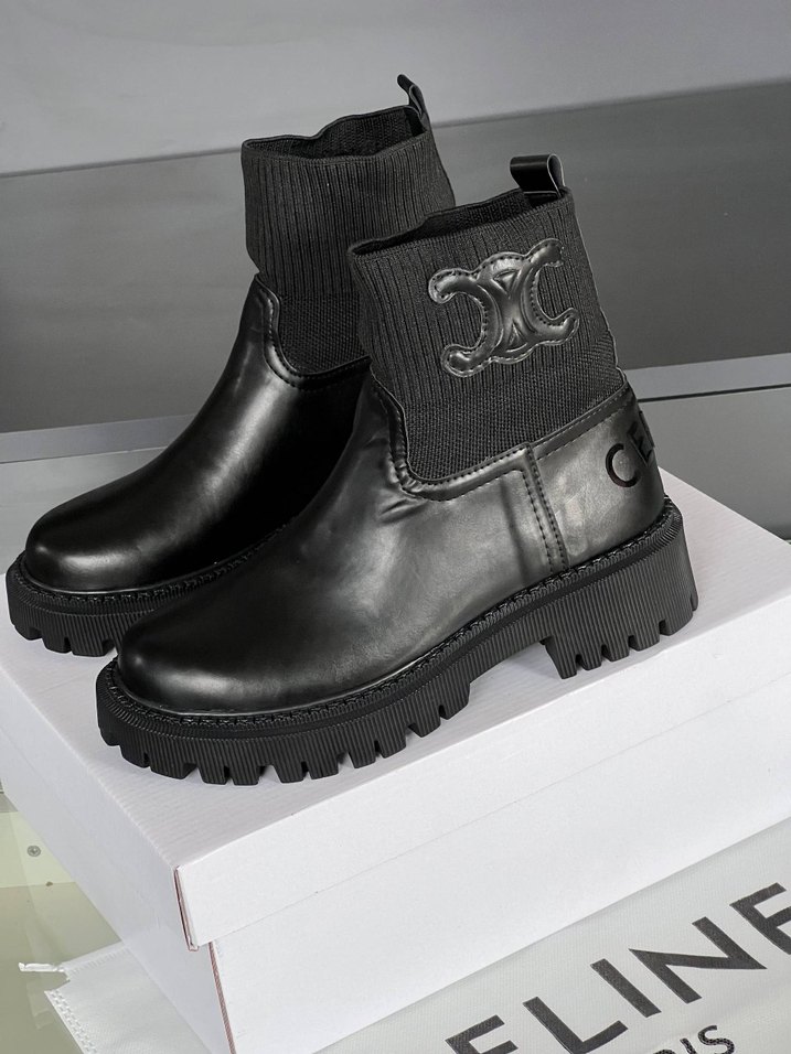 Siyah Deri Nakışlı Kadın Bot celine