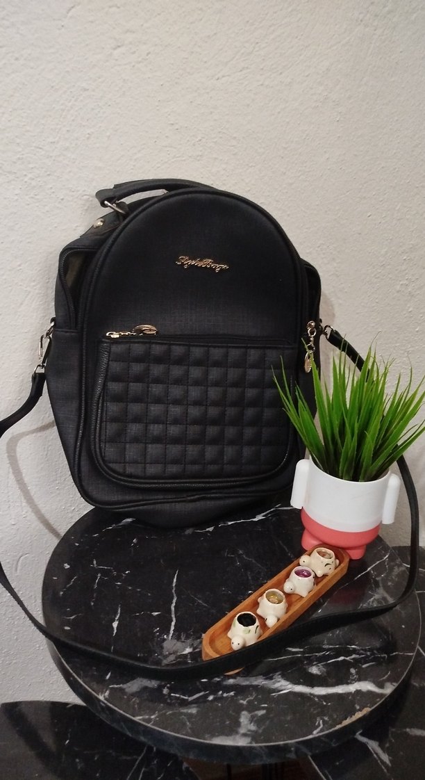 Siyah Deri Nakışlı Kadın Sırt Çantası