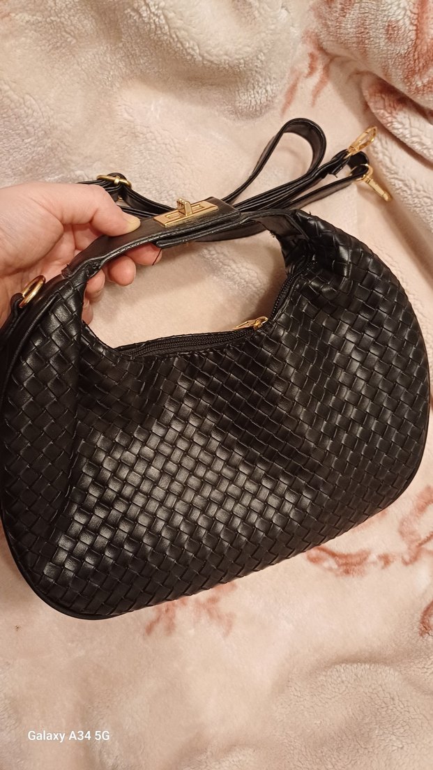 Siyah deri kadın çanta, örgü desenli ve tokalı askılıdır. Klasik şıklık ve gotik tarzı günlük kullanıma uygundur. hediye geldi hiç kullanmadım uzun askısı de mevcuttur