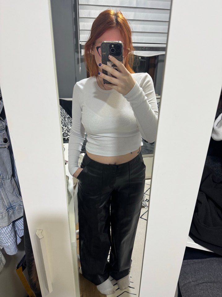 Siyah deri pantolon bir kere giyildi Zara S beden.