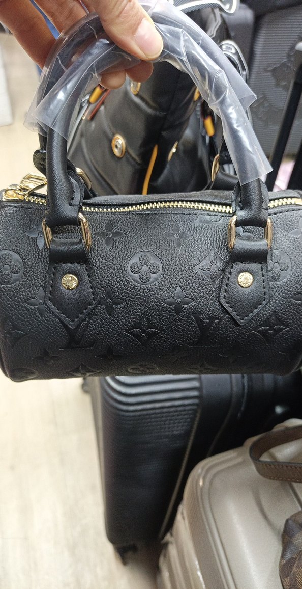 Siyah deri, desenli ve tokalı saplara sahip kadın çantası. Cesur Parisian sokak stilini yansıtır, günlük kullanıma uygundur.