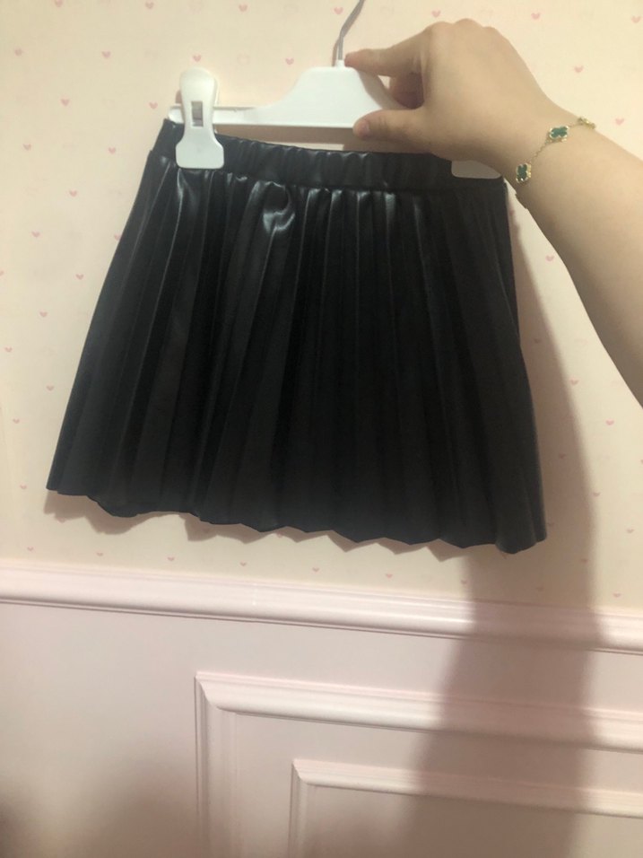 Bu siyah deri mini etek, pilili ve dar kesimdir, gotik tarzda olup partiler için uygundur.