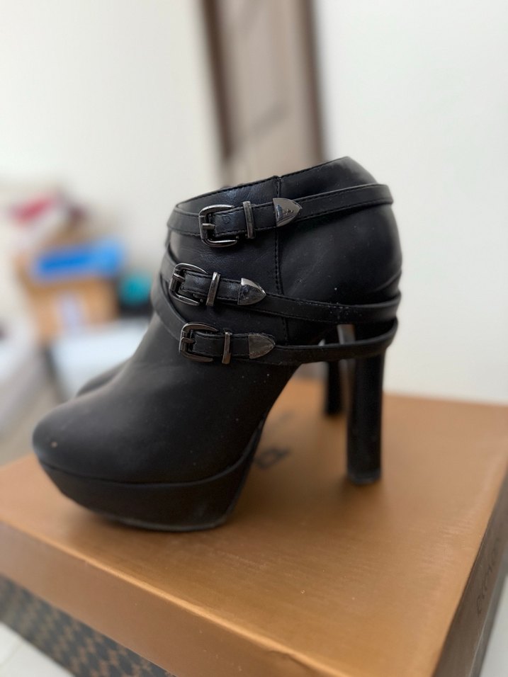 Siyah Deri Platform Topuklu Kemerli Kadın Bootie bot