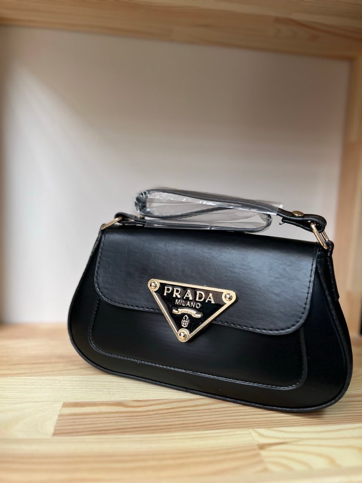 Siyah Deri Prada Tokalı El Çantası