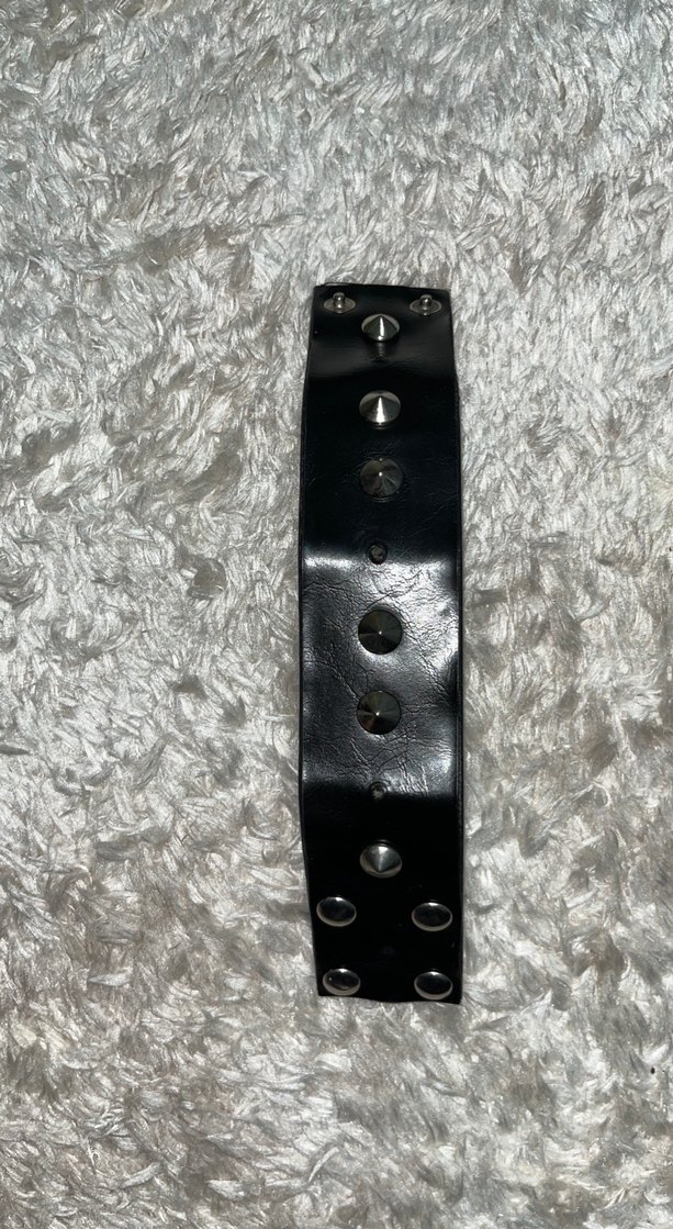 Siyah deri bileklik, metal zımbalar ve tokalı tasarımıyla gotik ve grunge punk tarzını yansıtıyor. Rock punk havası için ideal. Boş olan yerlere istediğiniz şeyi takabilirsiniz.