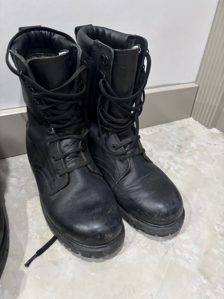 Tokalı detaylara sahip siyah deri botlar, grunge punk tarzını yansıtır.