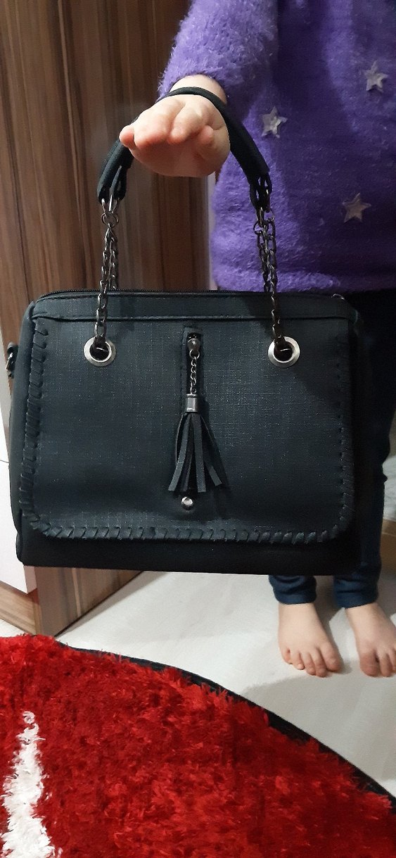 Siyah Deri Püsküllü Gotik Kadın Çanta